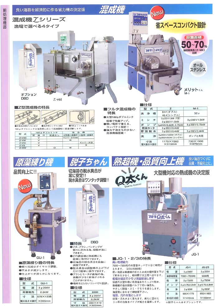 フルタ 混成機、原藻練り機、脱子ちゃん、熟超機・品質向上機
