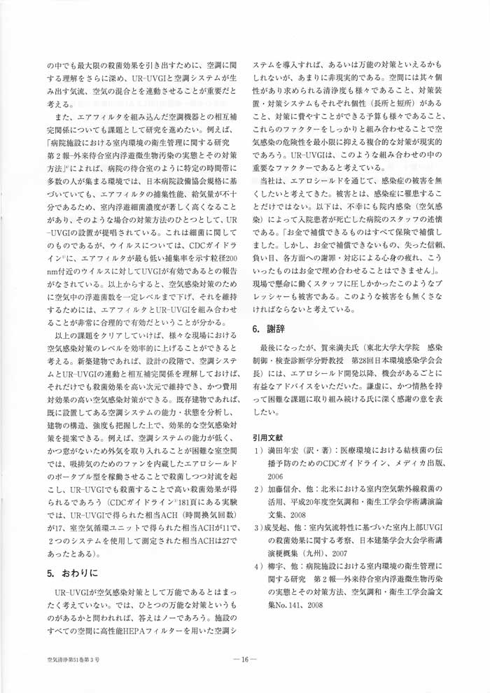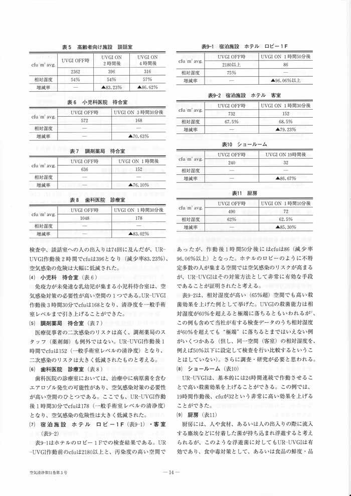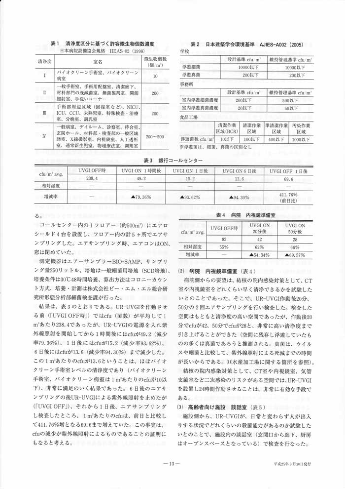 紫外線による空気殺菌 現場からの報告